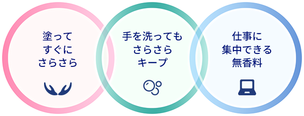 塗っても仕事の流れを止めないこと。周囲を気にせず使えること。気づいたときに、自然と手が伸びること。